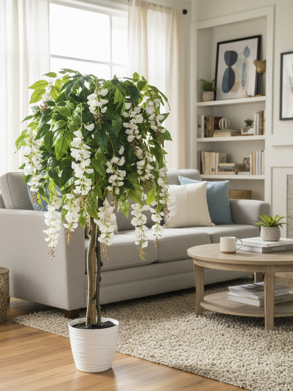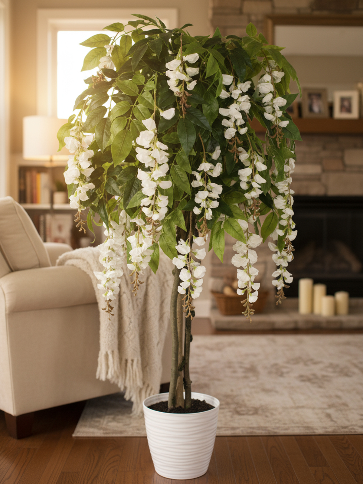 Искусственное растение белая Акация 130см в кашпо – отличный выбор для украшения интерьера. ФитоПарк представляет искусственное цветущее дерево в горшке, которое позволит создать атмосферу природы и красоты в вашем доме или офисе. Искусственные деревья для интерьера – это модный тренд современного дизайна, который придает пространству оригинальность и стиль. Растение Акация альбиция имеет размах кроны 60см, что позволяет ему стать ярким акцентом в помещении. Цветущие гроздья акации добавят в интерьер нотки весеннего настроения и романтики. Искусственная глициния свисающая создаст эффект легкости и воздушности. Сакура японская, искусственное дерево, известное своими нежными цветами, Акация или Глициния декоративная станут уникальным украшением и декором вашей свадьбы, дня рождения, фотозоны, венчания или другого торжественного мероприятия. Декор для свадьбы – это важный элемент создания романтической атмосферы, и искусственные растения и цветущие деревья великолепно выполняют эту функцию.После получения товара необходимо аккуратно приподнять верхние веточки, тогда высота дерева увеличится и будет соответствовать заявленной. Высота дерева указана по кроне.Габариты дерева в кашпо: 130х60х60см. Поставляется в разобранном виде.Большая просьба заказывать наши изделия заранее, доставка может быть более долгой, чем обычно.Если данный товар не доставляется в Ваш регион или его нет в наличии, Вы можете обратиться к нашему менеджеру.