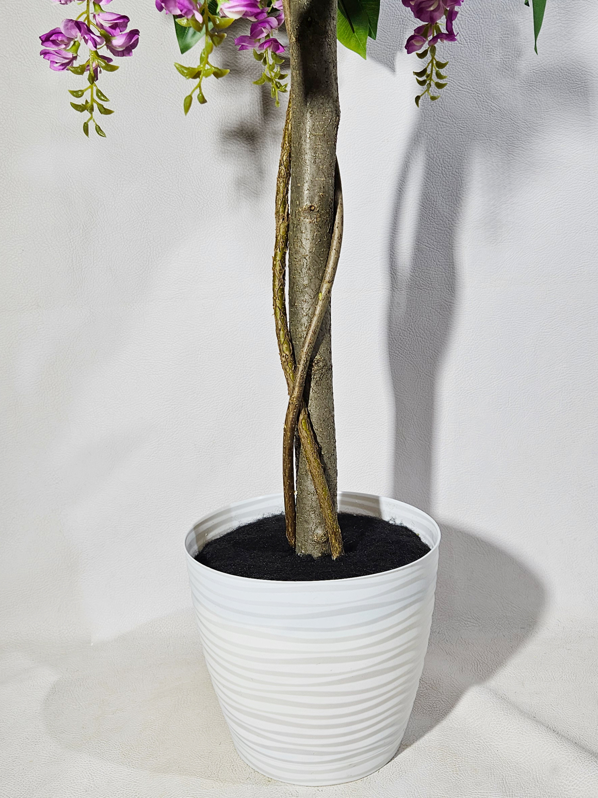 Искусственное дерево Глициния лиловая высотой 150см в стильном кашпо от ФитоПарк - это идеальное решение для создания уютной и привлекательной обстановки. Это большое цветущее дерево, выполненное с высокой степенью детализации, станет эффектным акцентом в вашем интерьере, будь то зал, гостиная, балкон или любое другое помещение. Благодаря своей реалистичности- дерево выполнено на натуральных стволах, и изысканному внешнему виду, глициния искусственная не уступает по красоте живым деревьям. Ее крупные и яркие свисающие соцветия создают атмосферу праздника и радости, делая её замечательным декором для свадьбы или другого торжества.Большое искусственное дерево в кашпо – практичный и весьма долговечный вариант декора, который не требует ухода, полива или специального освещения. Это позволяет размещать его в любых уголках вашего дома или офиса, даже в тех местах, где живые растения не смогли бы расти. Искусственные деревья для декора большие создают ощущение присутствия природы, и при этом вам не нужно беспокоиться о смене сезонов или необходимости пересадки.Эта глициния в горшке будет прекрасно смотреться как самостоятельно, так и в сочетании с другими растениями и декоративными элементами. Декор для свадьбы с её участием, для фотозоны на день рождения, для праздника - оформление искусственными цветами становится по-настоящему волшебным и незабываемым. Кроме того, деревья в зеленой листве и цветущие ветви этого растения визуально увеличивают пространство, создавая ощущение свежести и уюта.Глициния искусственная или акация лиловая представляет собой удачное сочетание эстетики и функциональности. Она несомненно станет ярким акцентом в интерьере, привлекая внимание своей элегантностью и утонченностью. Будь то сакура искусственная или другие искусственные растения для декора, данное декоративное дерево в горшке будет выделяться на фоне остальных уникальным дизайном и качественным выполнением.Размер дерева в кашпо ВхШхГ: 150х60х60см. Поставляется в разобранном виде!Большая просьба заказывать наши изделия заранее, доставка может быть более долгой, чем обычно.Если данный товар не доставляется в Ваш регион или его нет в наличии, Вы можете обратиться к нашему менеджеру.
