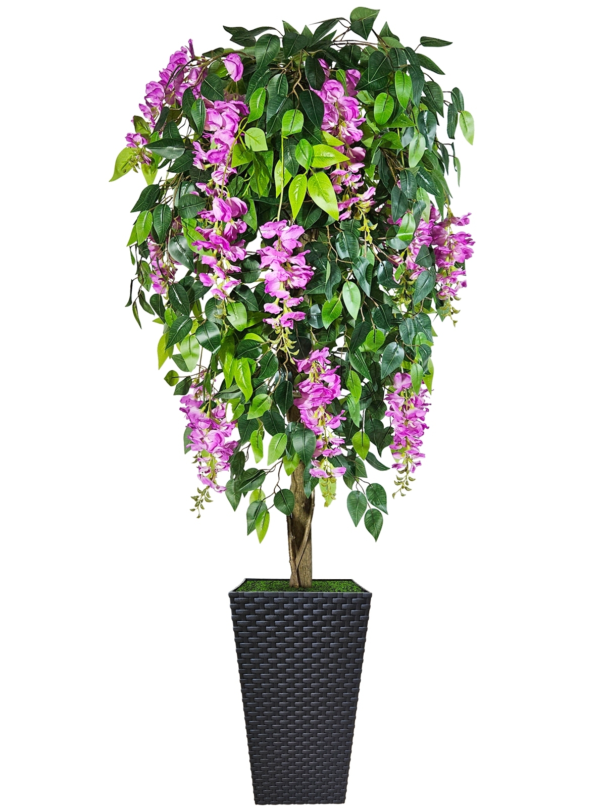 Искусственное дерево глицинии лилового цвета высотой 1.5м станет отличным украшением для вашего дома или сада. Закрепленное в высоком кашпо высотой 41 см, оно создаст атмосферу естественности и нежности в любом интерьере. Глициния, известная своим великолепным цветением, прекрасно смотрится как в помещениях, так и на открытом воздухе, добавляя природное очарование и уют. Изготовленная нашими мастерами на натуральных стволах, это большое дерево в кашпо не оставит никого равнодушным к его красоте!Это высокое декоративное растение в кашпо идеально подходит для создания уникальных композиций в оформлении жилых помещений, офисов и подойдет даже для улицы. Искусственные деревья для домашнего интерьера — отличный выбор для тех, кто хочет наслаждаться красотой природы, не заботясь о поливе и уходе.Ваша мечта о зеленом уголке станет реальностью благодаря этому высокому дереву в горшке, которое украсит любое пространство. Установите его в углу комнаты, в прихожей, или на веранде — эффект будет потрясающим. Декоративные деревья и кустарники добавят характер вашему интерьеру и сделают его более живым и привлекательным.Добавьте в свой дом или сад красивую глицинию и наслаждайтесь её прекрасным видом в любое время года. Искусственные деревья цветущие - Сакура, Глициния, Акация подойдут для создания атмосферы гармонии и уюта. Не упустите возможность сделать ваш интерьер более выразительным и стильным.Дерево поставляется в разобранном виде, соединяется легко в один клик штифтом.Размер дерева в кашпо ВхШхГ: 150х60х60см.Большая просьба заказывать наши изделия заранее, доставка может быть более долгой, чем обычно.Если данный товар не доставляется в Ваш регион или его нет в наличии, Вы можете обратиться к нашему менеджеру.