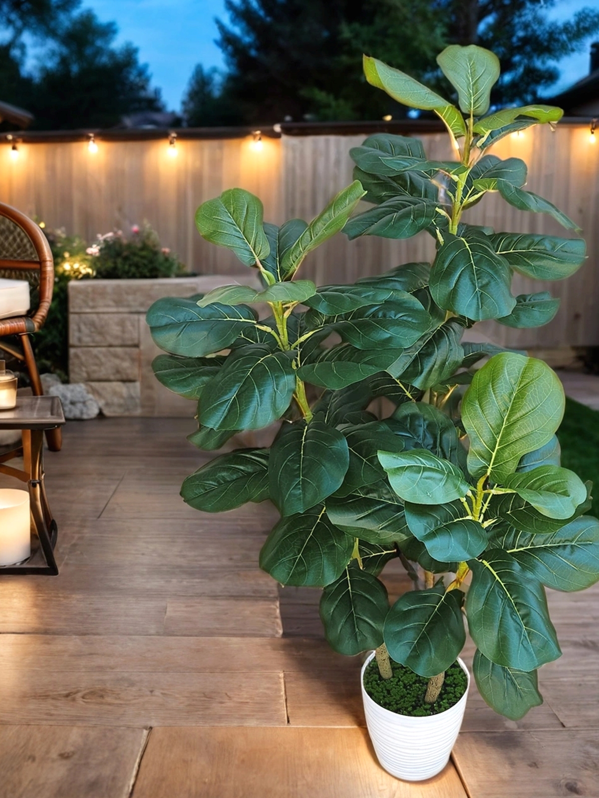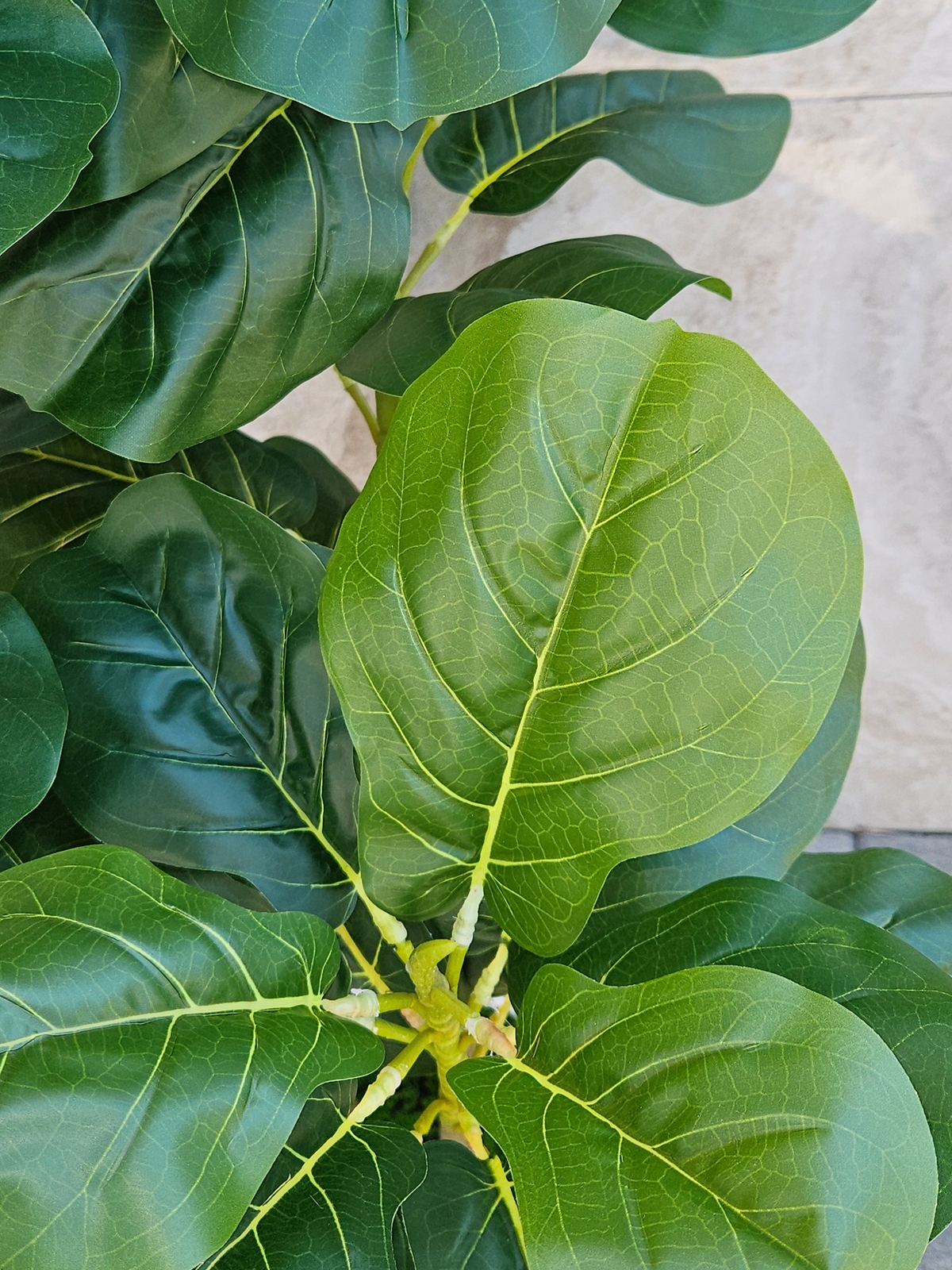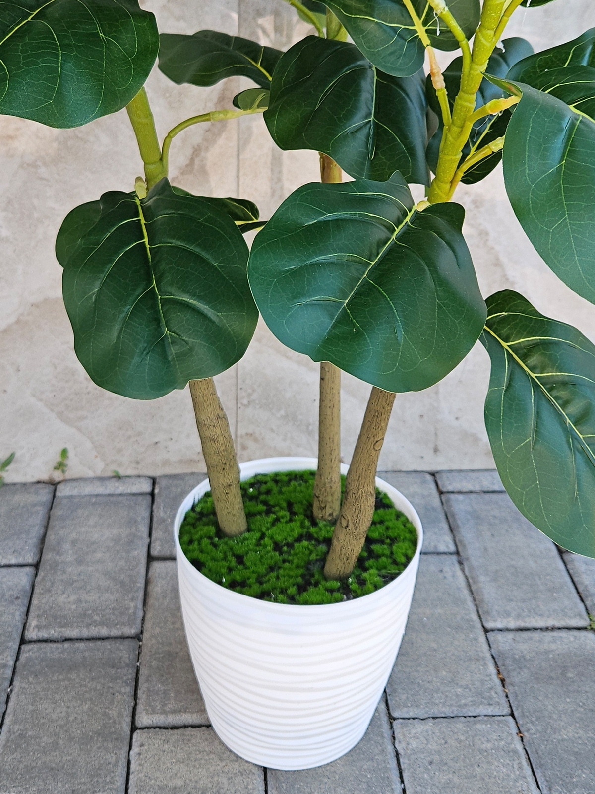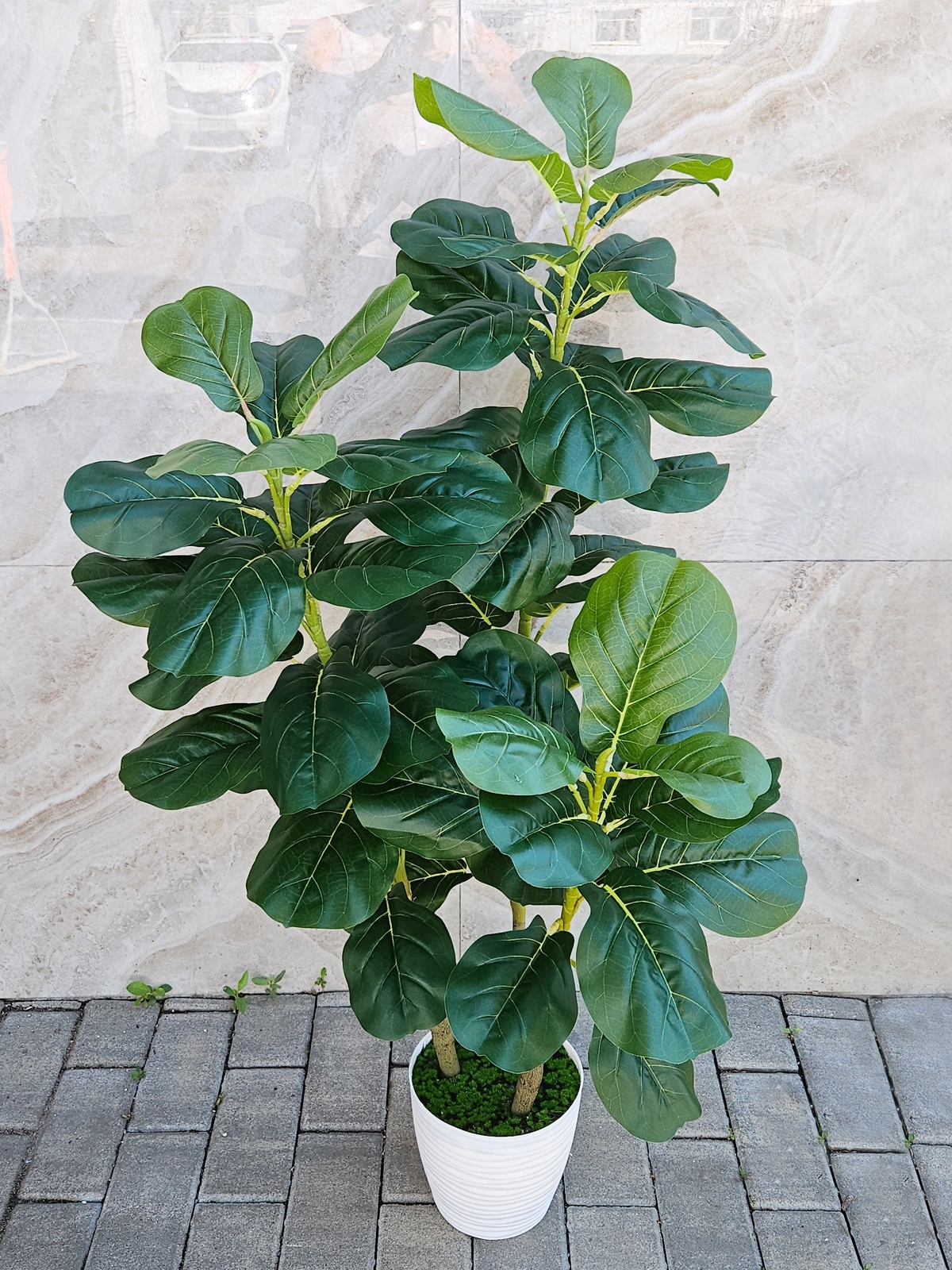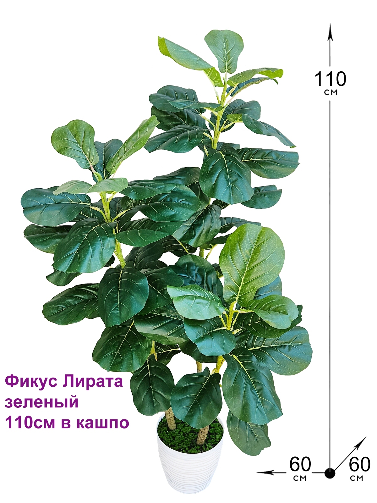 Современное искусственное растение - Фикус Лирата 110см в кашпо из белого пластика порадует Вас обилием листьев красивой формы натуральных зеленых оттенков! У этого роскошного куста три ствола и множество листьев из латекса. Неприхотливость, устойчивость к любому освещению и погодным условиям позволяют размещать кашпо с этим декоративным цветком в любом месте, будь то гостиная, коридор, кухня, ванная комната или даже открытая терраса, веранда, патио. Искусственное декоративное растение Фикус Лирата не требовательно в уходе, не боится влаги. Его можно поставить в свое декоративное кашпо, чуть большего размера, в высокое напольное кашпо или вазон для улицы.Купить дерево фикус домой в горшке - и любое пространство станет с ним уютнее и теплее. Искусственный Фикус лировидный в горшке - не только красивый и стильный элемент тропического декора, но и оригинальный подарок для ваших любимых! В нашем магазине много красивых и качественных растений и деревьев для дома и офиса!Размер растения в кашпо ВхШхГ: 110х60х60 см. Кашпо диаметром 18 см.Большая просьба заказывать наши изделия заранее, доставка может быть более долгой, чем обычно.Если данный товар не доставляется в Ваш регион или его нет в наличии, Вы можете обратиться к нашему менеджеру.