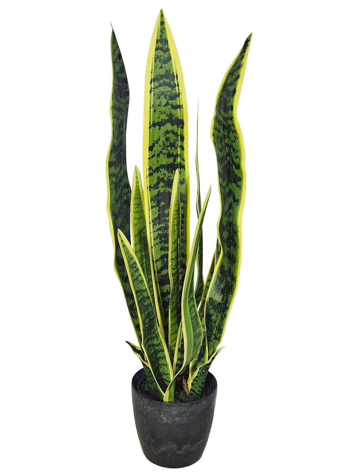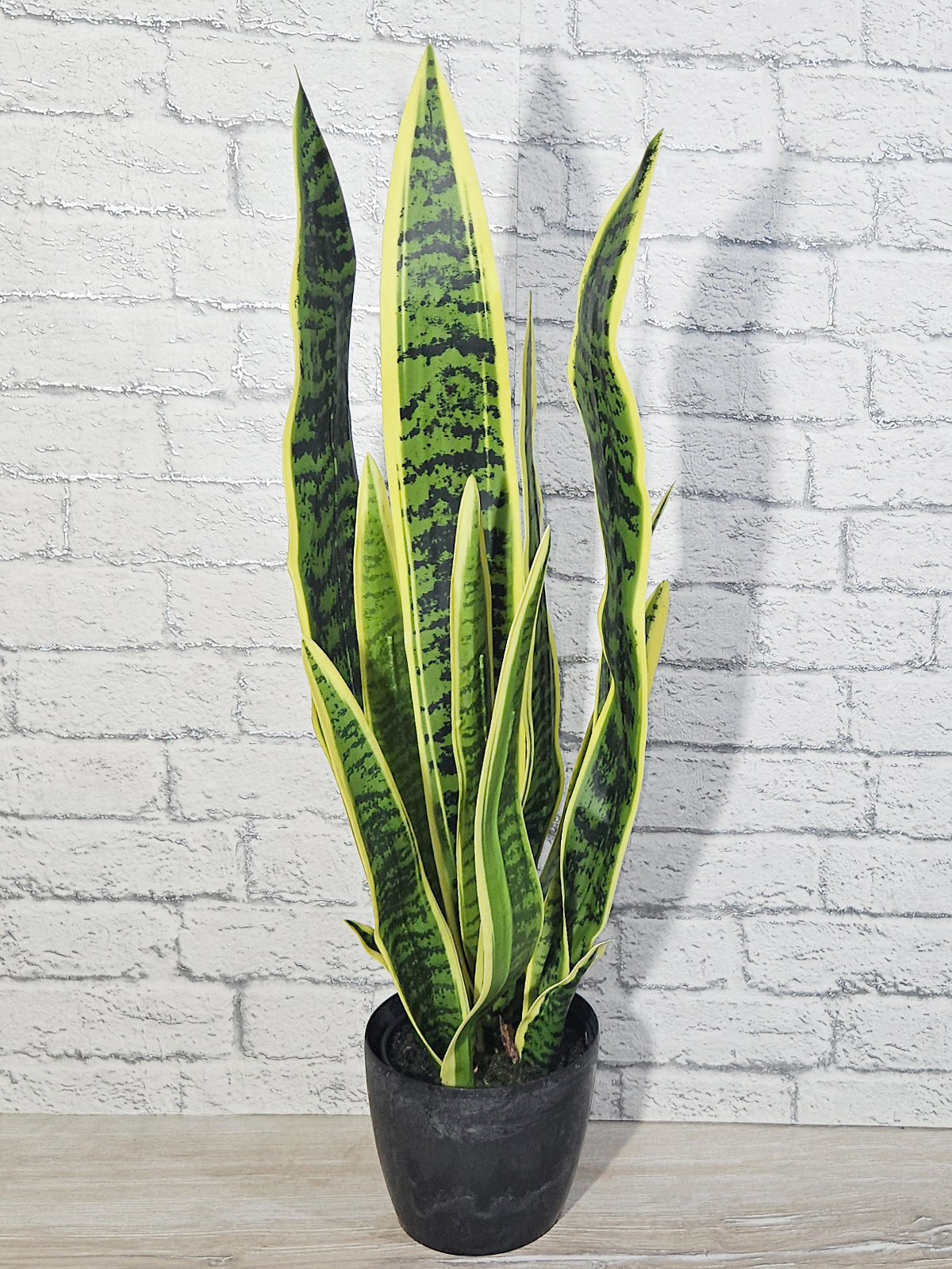 Яркая и элегантная искусственная Сансевиерия в черном кашпо станет стильным украшением интерьера дома, офиса, гостиницы, кафе, ресторана. Это благородное домашнее растение с удлиненными листьями мечевидной формы зелёного цвета с сочной жёлтой окантовкой, часто называют ещё Щучий хвост или Тещин язык, охотно используется дизайнерами в декоре интерьера для создания акцента цвета и формы.Живой цветок сансевиерия ядовит для человека и домашних животных, поэтому мы предлагаем его искусственный аналог. Искусственное комнатное растение Сансевиерия в горшке не требует особого ухода, ее качественные плотные листья сделаны из латекса, внутри плотная проволока для придания нужной формы листу. Сансевиерию искусственную можно протирать время от времени влажной тканью от пыли, от этого листья не потеряют своей привлекательности. Сансевиерия станет отличным подарком к любому празднику и торжеству. ВхШхГ: 65х20х20см.Большая просьба заказывать наши изделия заранее, доставка может быть более долгой, чем обычно.Если данный товар не доставляется в Ваш регион или его нет в наличии, Вы можете обратиться к нашему менеджеру.