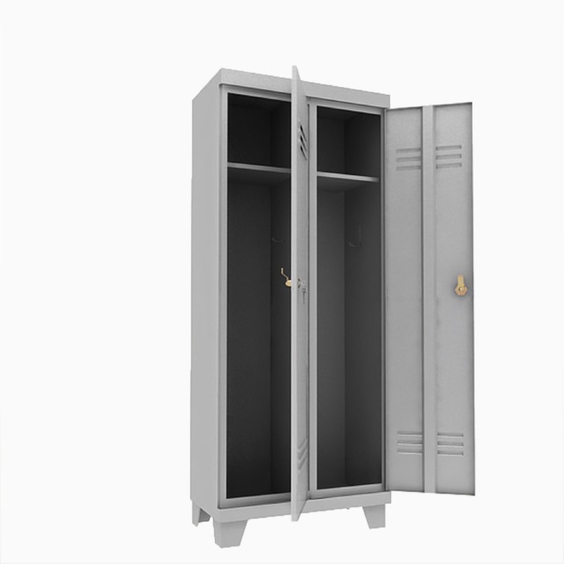 Шкаф двух секционный с 1 й полкой 2 крючками замок металл 0,6 мм. цвет светло- серый. Г /Ш / В (700/370/1725)
