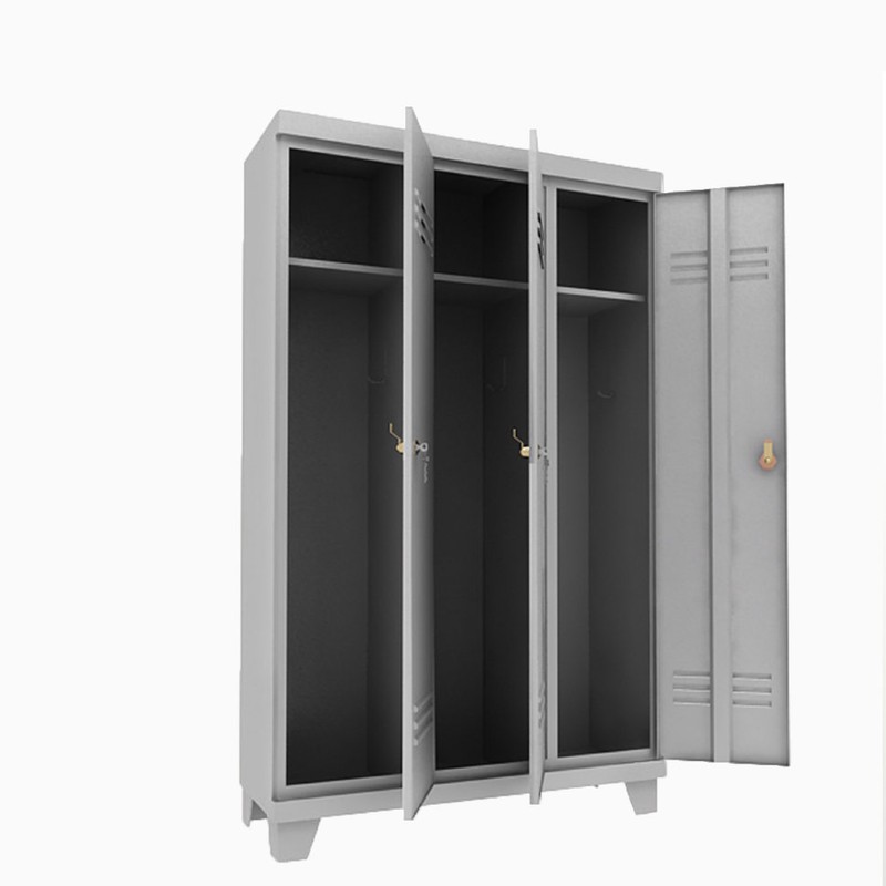 Шкаф трех секционный с 1 й полкой 2 крючками замок металл 0,6 мм. цвет светло- серый. Г /Ш / В (1050/370/1725)