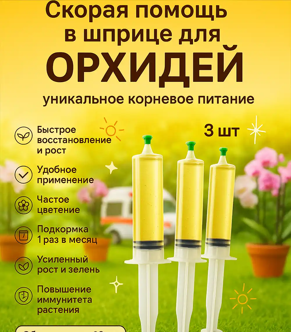 Формула удобрения содержит необходимые макро- и микроэлементы, а также витамины и фитогормоны, которые активизируют корневую систему, усиливают питание и стимулируют образование цветоносов. Уже после первых применений орхидея становится крепче, листья приобретают яркий зелёный оттенок, а цветение становится более продолжительным и обильным.️ Важно! Только для наружного применения. Внутрь не принимать. Хранить в недоступном для детей месте.️Меры предосторожности:Используйте перчатки, после использования шприц утилизировать.