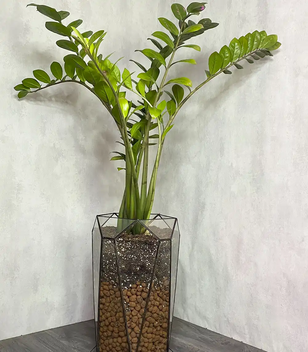 Замиокулькас большой в стеклянном кашпо «Морковка»