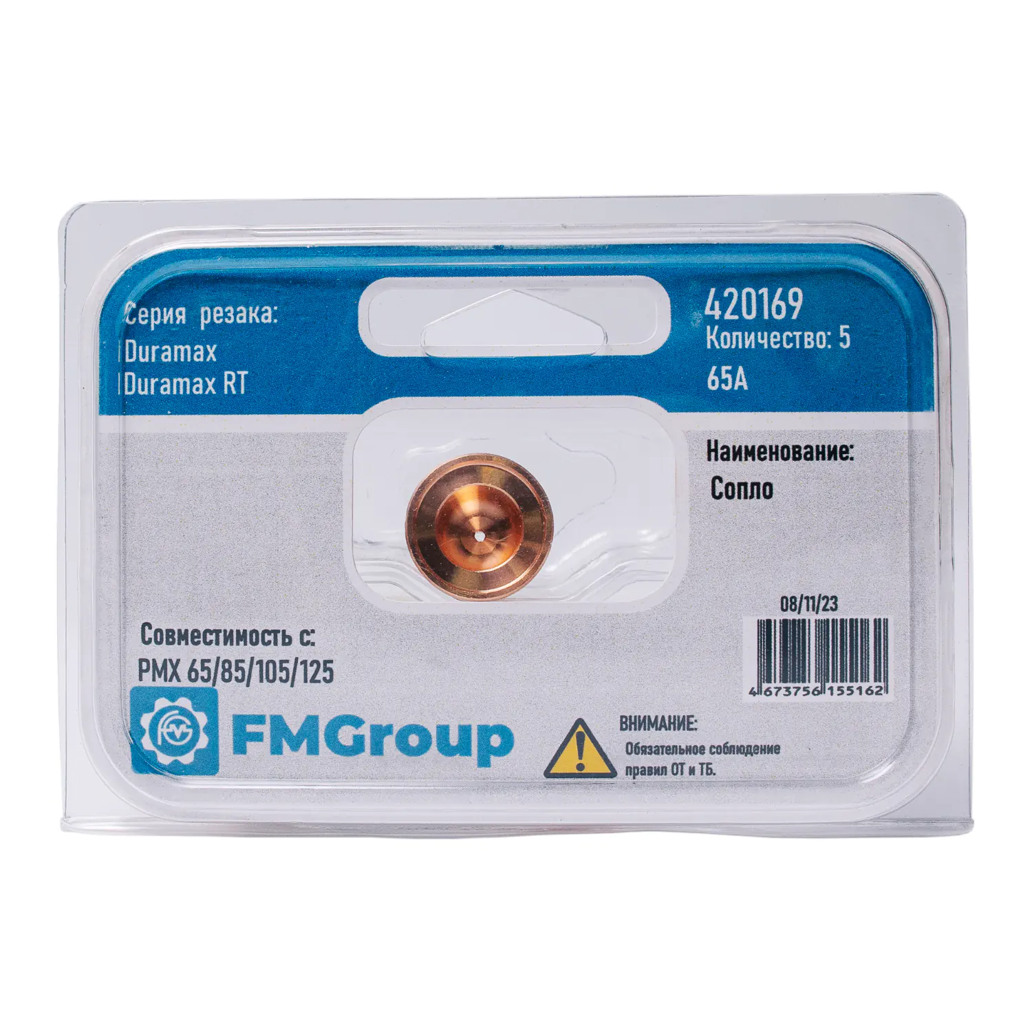 Максимальный рекомендуемый ток резки с использованием сопла 420169: 65A