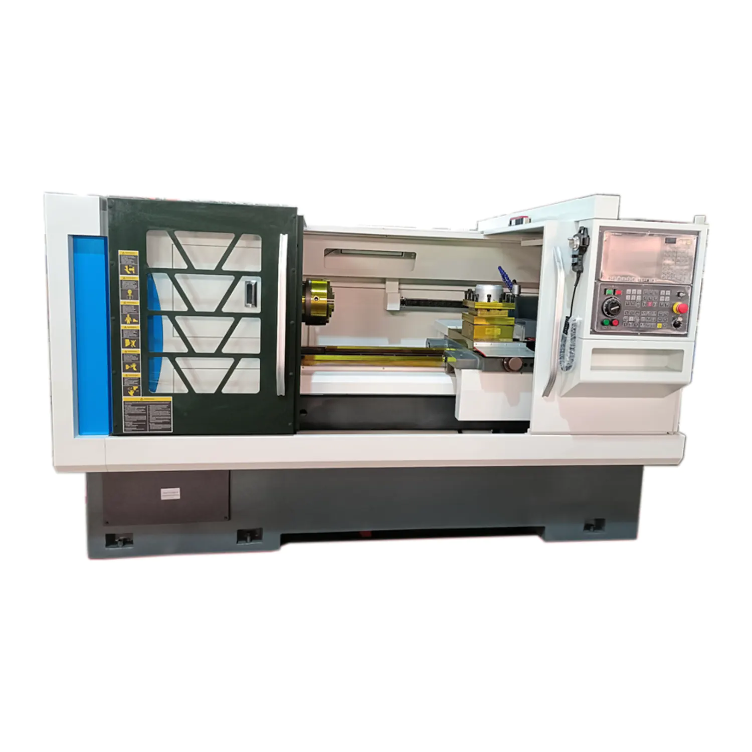 Токарный станок с ЧПУ CK530i имеет плоскую конструкцию станины, жесткие направляющие, механический трехступенчатый редуктор, полную кабинетную защиту.