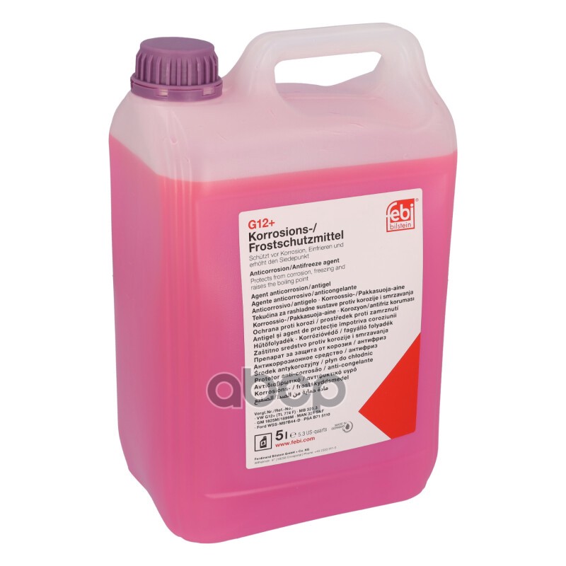 Чтобы купить Антифриз ЛИЛОВЫЙ G12 Plus 5L 80C Febi арт. 19402 оптом по цене 5235 руб., свяжитесь с поставщиком. Компания поставщик — For-cars (ИП «Иванов Алексей Валентинович») из города Москва. Доставка возможна самовывоз, транспортной компанией, авиатранспортом, железной дорогой. Способы оплаты: наличными, безналичная оплата, электронные деньги.