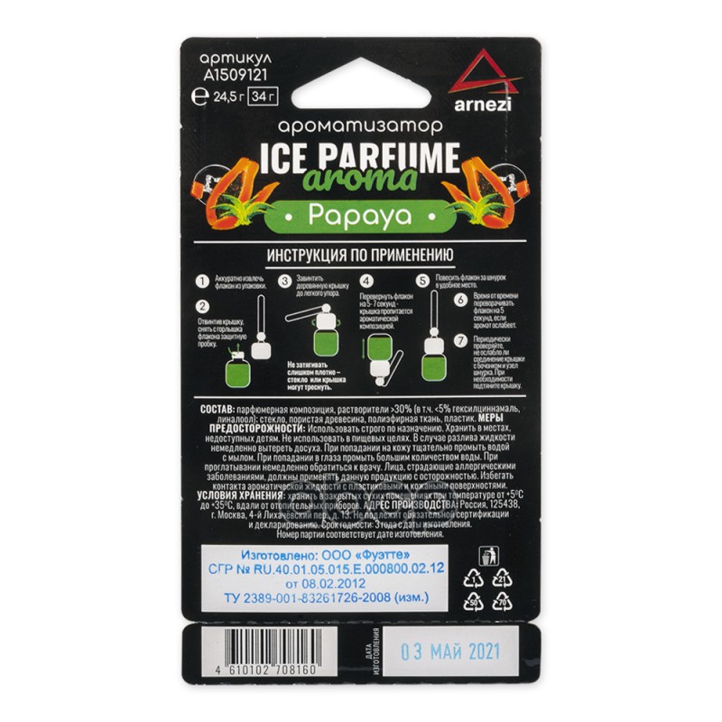 Чтобы купить Ароматизатор подвесной, парфюм Papaya ARNEZI арт. A1509121 оптом по цене 112 руб., свяжитесь с поставщиком. Компания поставщик — For-cars (ИП «Иванов Алексей Валентинович») из города Москва. Доставка возможна самовывоз, транспортной компанией, авиатранспортом, железной дорогой. Способы оплаты: наличными, безналичная оплата, электронные деньги.