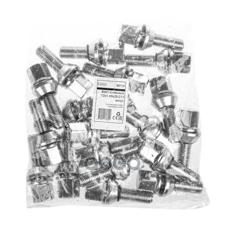 Чтобы купить Болт колесный 12x1.50x28 C17 конус подстроечный +- GANZ арт. BB119 оптом по цене 97 руб., свяжитесь с поставщиком. Компания поставщик — For-cars (ИП «Иванов Алексей Валентинович») из города Москва. Доставка возможна самовывоз, транспортной компанией, авиатранспортом, железной дорогой. Способы оплаты: наличными, безналичная оплата, электронные деньги.