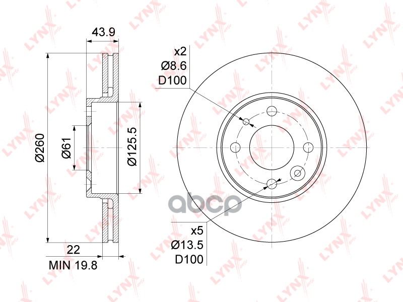 Диск тормозной передний (260x22) NISSAN Micra(K12) 1.0-1.6 02> / Note(E11) 1.4-1.6 06> / Tiida 1.8 0