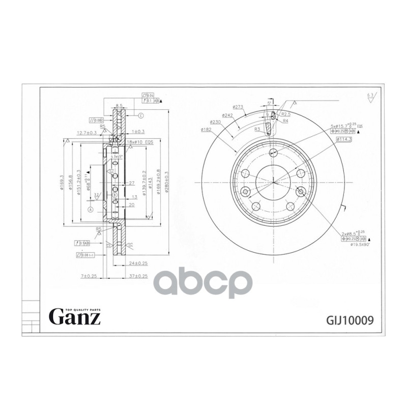 Диск тормозной передний с покрытием RENAULT Duster/Megane III/Fluence /Vent D=280mm GANZ.