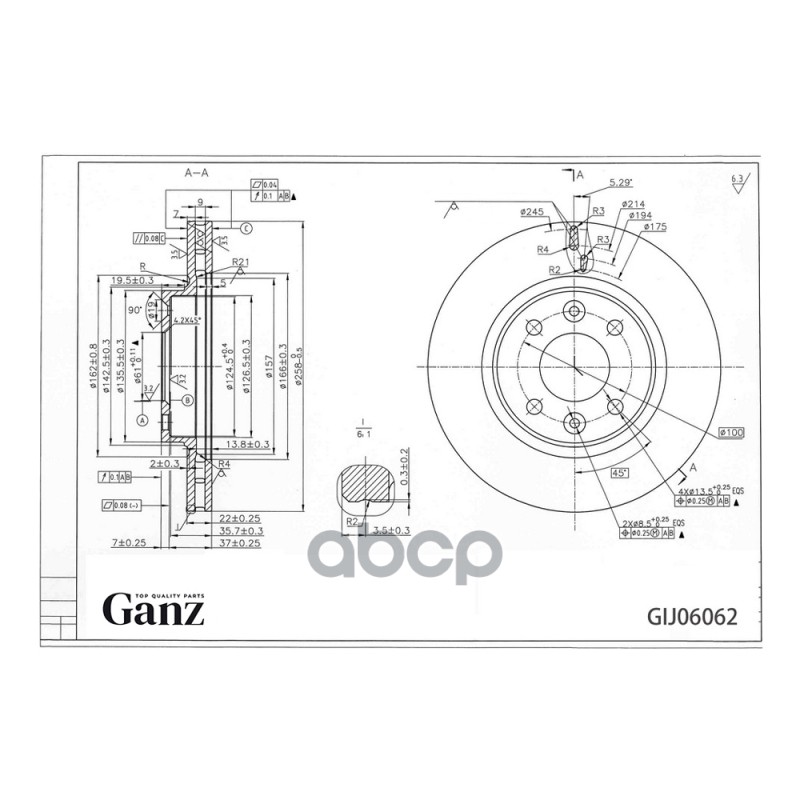 ДИСК ТОРМОЗНОЙ ПЕРЕДНИЙ С ПОКРЫТИЕМ RENAULT LOGAN II 2013-> /VENT D=258MM GANZ.