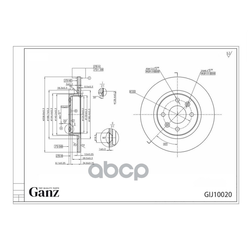 Диск тормозной передний с покрытием RENAULT Logan 1,4-1,6 04-> GANZ.