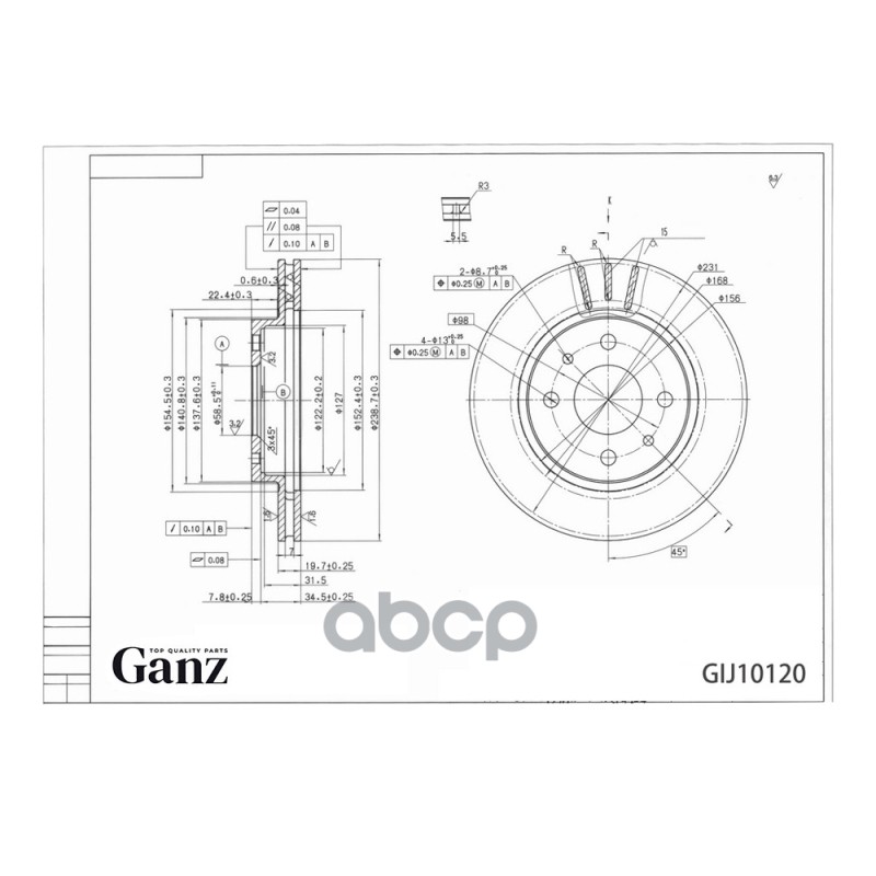 ДИСК ТОРМОЗНОЙ ПЕРЕДНИЙ С ПОКРЫТИЕМ ВАЗ 2110, 1118, 2170, 2190 R-13 GANZ.