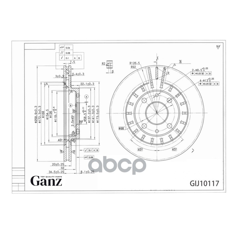 ДИСК ТОРМОЗНОЙ С ПОКРЫТИЕМ ВАЗ 2110, 1118, 2170, 2190 R-14 LADA 2110 / KALINA / PRIORA / GRANTA GAN.