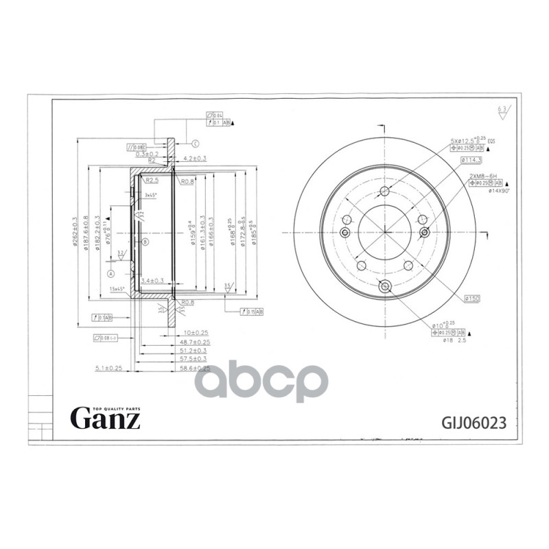 Диск тормозной задний с покрытием KIA Cerato 08-> / Soul 08-> GANZ.