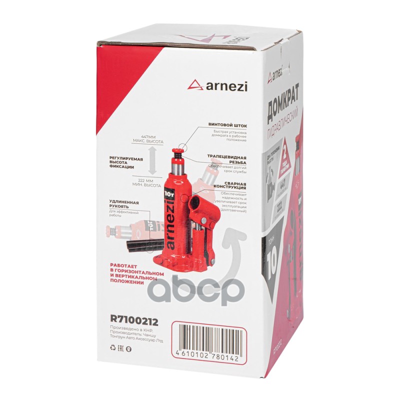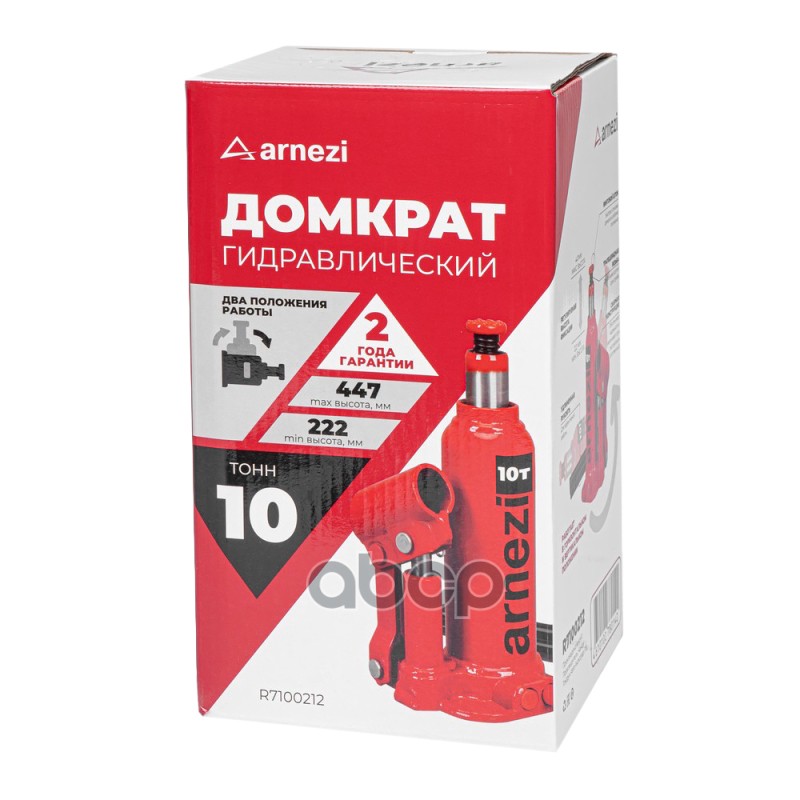 Чтобы купить Домкрат гидравлический бутылочный 10т 222-447мм ARNEZI ARNEZI арт. R7100212 оптом по цене 2769 руб., свяжитесь с поставщиком. Компания поставщик — For-cars (ИП «Иванов Алексей Валентинович») из города Москва. Доставка возможна самовывоз, транспортной компанией, авиатранспортом, железной дорогой. Способы оплаты: наличными, безналичная оплата, электронные деньги.