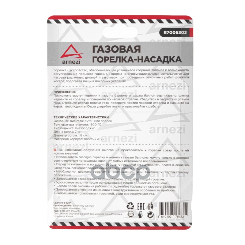 Чтобы купить Газовая горелка-насадка с пьезоподжигом на цанговы ARNEZI арт. R7006303 оптом по цене 317 руб., свяжитесь с поставщиком. Компания поставщик — For-cars (ИП «Иванов Алексей Валентинович») из города Москва. Доставка возможна самовывоз, транспортной компанией, авиатранспортом, железной дорогой. Способы оплаты: наличными, безналичная оплата, электронные деньги.