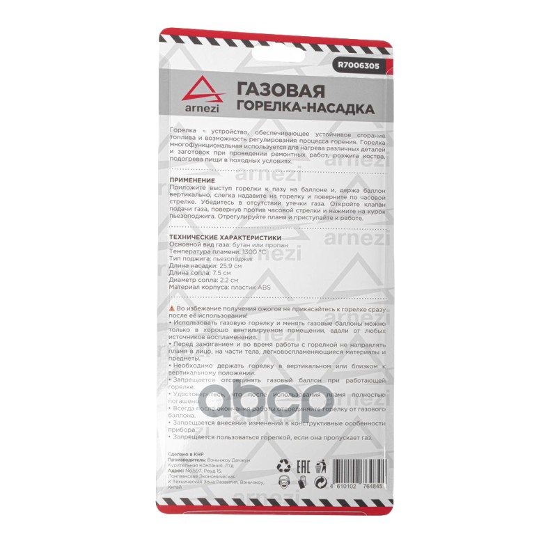 Чтобы купить Газовая горелка насадка с пьезоподжигом на цанговый баллон с ручкой ARNEZI арт. R7006305 оптом по цене 622 руб., свяжитесь с поставщиком. Компания поставщик — For-cars (ИП «Иванов Алексей Валентинович») из города Москва. Доставка возможна самовывоз, транспортной компанией, авиатранспортом, железной дорогой. Способы оплаты: наличными, безналичная оплата, электронные деньги.