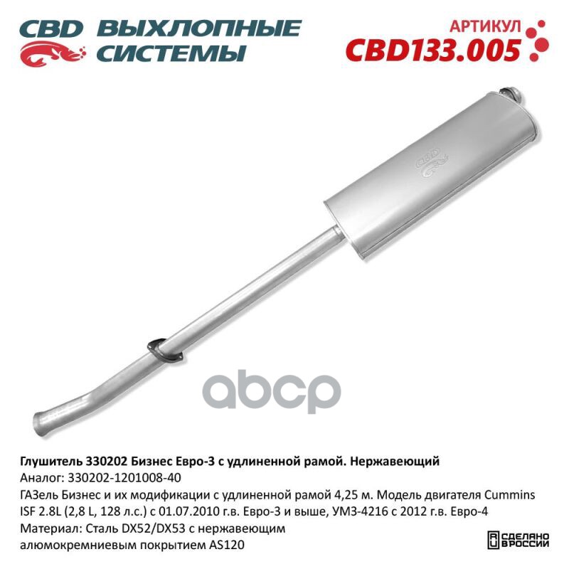 Глушитель ГАЗель Бизнес и их модификации c удлиненной рамой CBD.