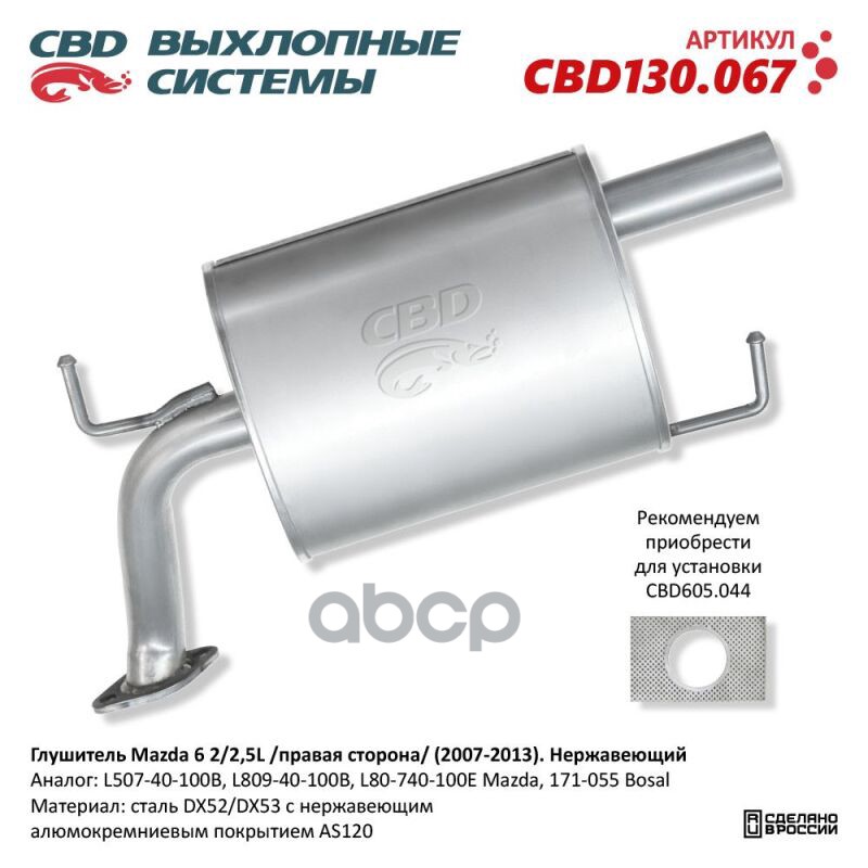 Глушитель Mazda 6 2⁄2,5L /правая сторона/ (2007-2013). Нержавеющий. NEW CBD.