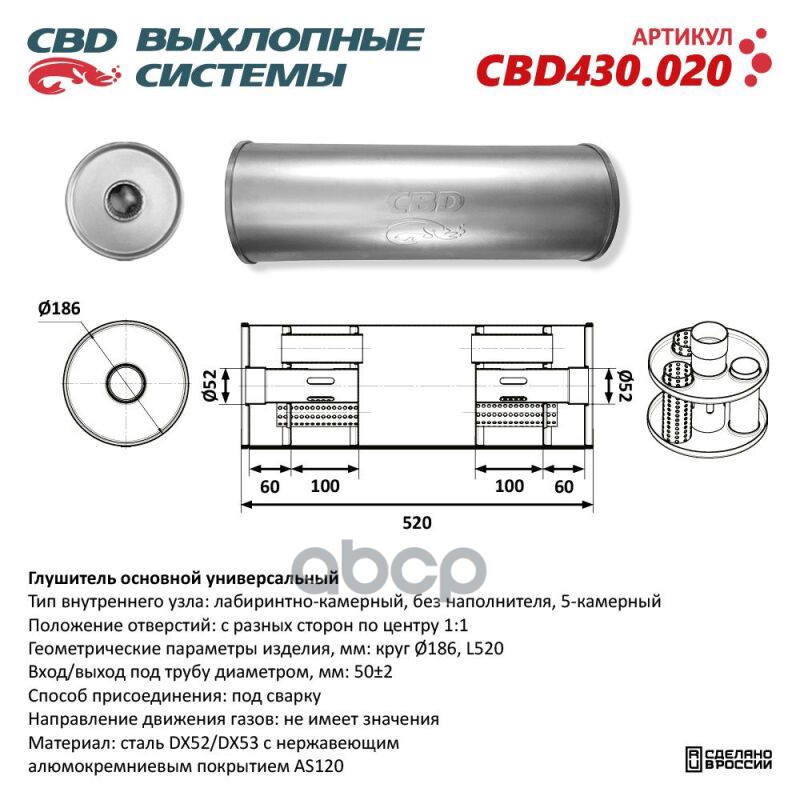 Чтобы купить Глушитель Нержавеющий. Круг ?186, L520. Отверстия с разных сторон по центру (1:1) под трубу 51мм. CBD CBD арт. CBD430020 оптом по цене 3395 руб., свяжитесь с поставщиком. Компания поставщик — For-cars (ИП «Иванов Алексей Валентинович») из города Москва. Доставка возможна самовывоз, транспортной компанией, авиатранспортом, железной дорогой. Способы оплаты: наличными, безналичная оплата, электронные деньги.