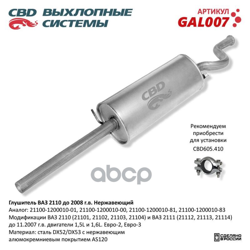 Чтобы купить Глушитель основной 2110, 2111 ‘СВД’ (г.Санкт-Петербург) (нерж.) (до 2007г.) CBD арт. GAL007 оптом по цене 3233 руб., свяжитесь с поставщиком. Компания поставщик — For-cars (ИП «Иванов Алексей Валентинович») из города Москва. Доставка возможна самовывоз, транспортной компанией, авиатранспортом, железной дорогой. Способы оплаты: наличными, безналичная оплата, электронные деньги.