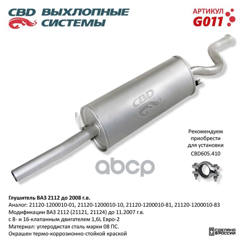 Чтобы купить Глушитель основной 2112 ‘СВД’ (г.Санкт-Петербург) (до 2007 г.) CBD арт. G011 оптом по цене 2687 руб., свяжитесь с поставщиком. Компания поставщик — For-cars (ИП «Иванов Алексей Валентинович») из города Москва. Доставка возможна самовывоз, транспортной компанией, авиатранспортом, железной дорогой. Способы оплаты: наличными, безналичная оплата, электронные деньги.