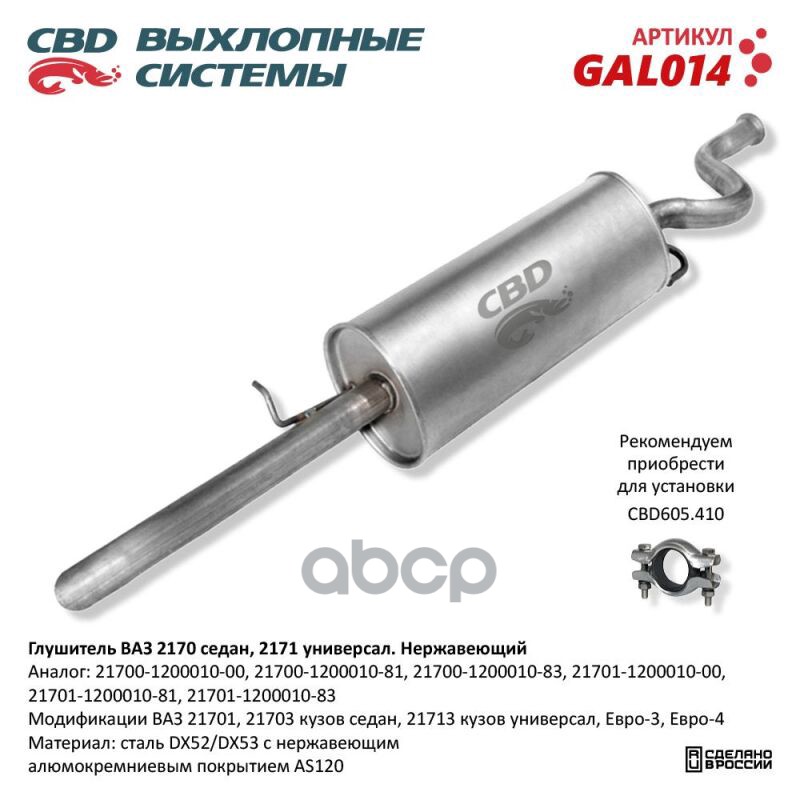 Чтобы купить Глушитель основной 2170,2171,2110 н/о ‘СВД’ (г.Санкт-Петербург) (с 2007 г.) Евро 3 (нерж.) CBD арт. GAL014 оптом по цене 3303 руб., свяжитесь с поставщиком. Компания поставщик — For-cars (ИП «Иванов Алексей Валентинович») из города Москва. Доставка возможна самовывоз, транспортной компанией, авиатранспортом, железной дорогой. Способы оплаты: наличными, безналичная оплата, электронные деньги.