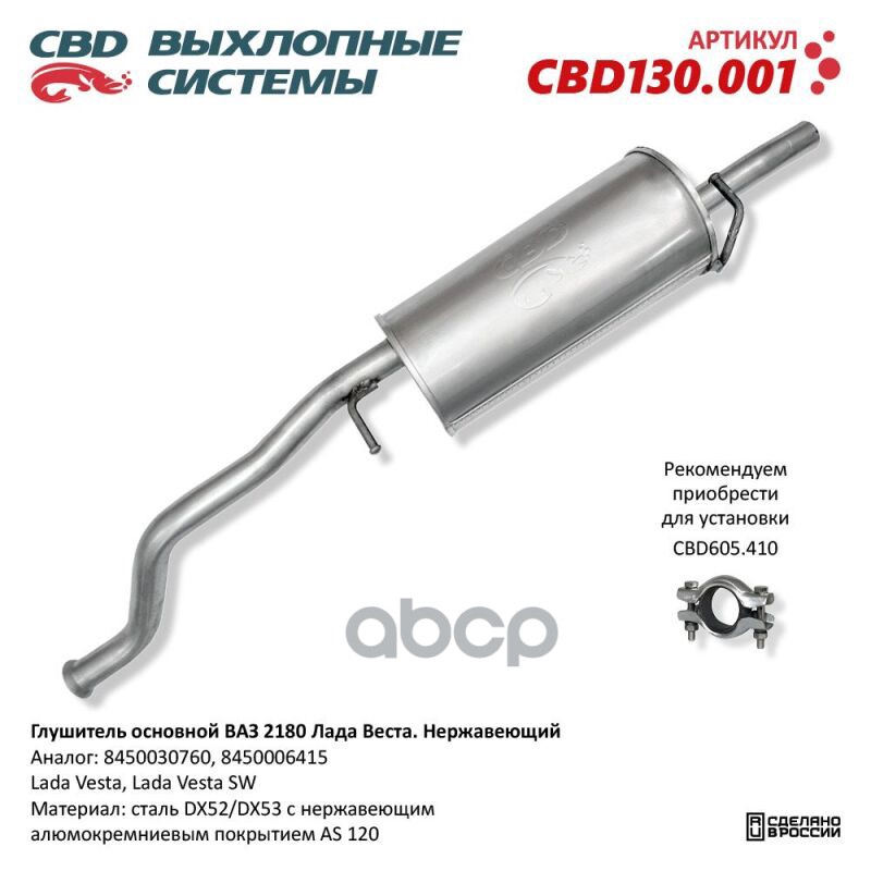 Чтобы купить Глушитель основной 2180 Vesta ‘СВД’ (нерж) CBD арт. CBD130001 оптом по цене 3856 руб., свяжитесь с поставщиком. Компания поставщик — For-cars (ИП «Иванов Алексей Валентинович») из города Москва. Доставка возможна самовывоз, транспортной компанией, авиатранспортом, железной дорогой. Способы оплаты: наличными, безналичная оплата, электронные деньги.