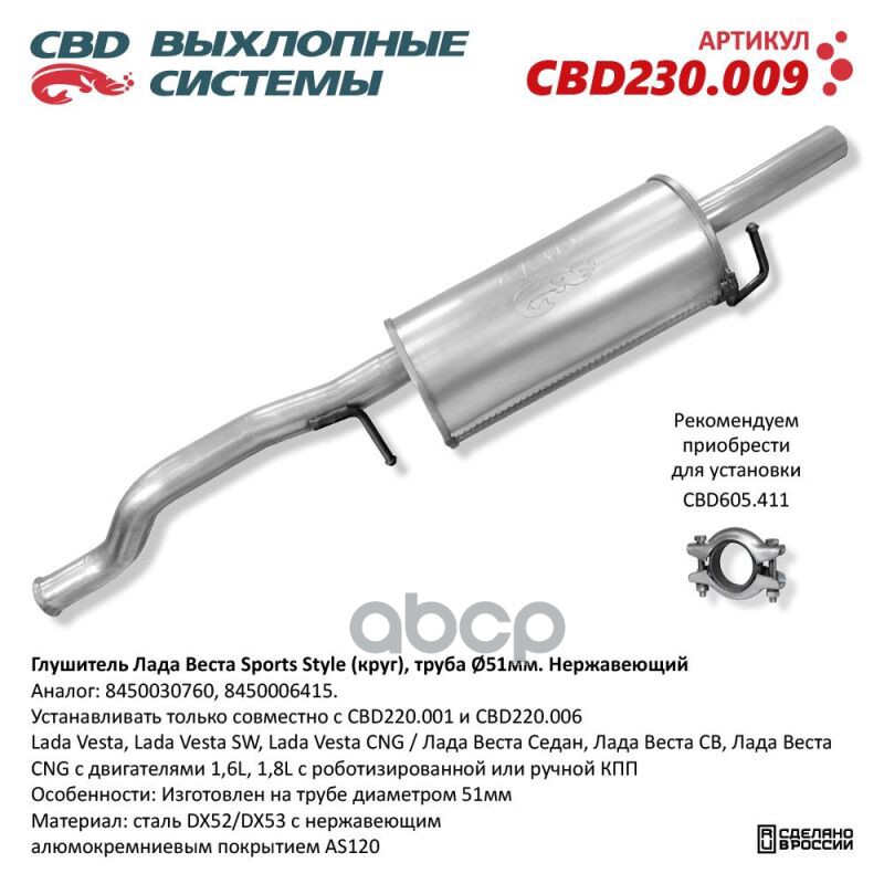 Глушитель основной 2181 LADA VESTA Sports Style, труба 51мм. ‘CBD’