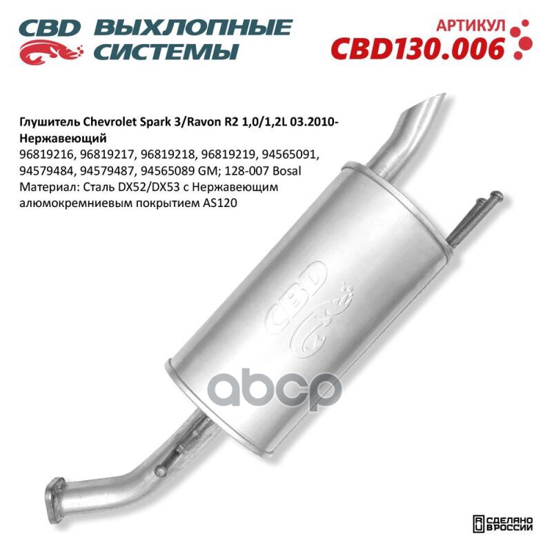 Чтобы купить Глушитель основной CBD арт. CBD130006 оптом по цене 4051 руб., свяжитесь с поставщиком. Компания поставщик — For-cars (ИП «Иванов Алексей Валентинович») из города Москва. Доставка возможна самовывоз, транспортной компанией, авиатранспортом, железной дорогой. Способы оплаты: наличными, безналичная оплата, электронные деньги.