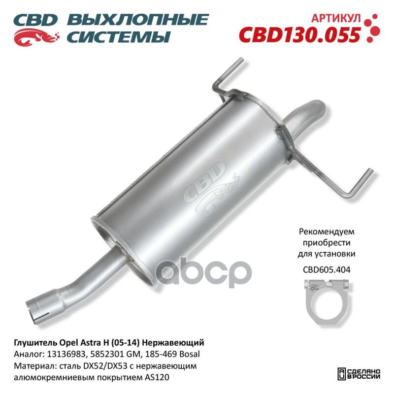 Чтобы купить Глушитель основной Opel Astra H (05-14) ‘СВD’ (нерж.) CBD арт. CBD130055 оптом по цене 4639 руб., свяжитесь с поставщиком. Компания поставщик — For-cars (ИП «Иванов Алексей Валентинович») из города Москва. Доставка возможна самовывоз, транспортной компанией, авиатранспортом, железной дорогой. Способы оплаты: наличными, безналичная оплата, электронные деньги.