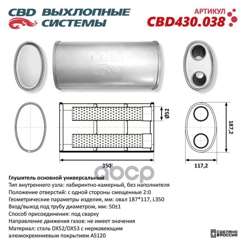 Чтобы купить Глушитель основной универсальный Нерж сталь. Овал D187117, L350 CBD арт. CBD430038 оптом по цене 2700 руб., свяжитесь с поставщиком. Компания поставщик — For-cars (ИП «Иванов Алексей Валентинович») из города Москва. Доставка возможна самовывоз, транспортной компанией, авиатранспортом, железной дорогой. Способы оплаты: наличными, безналичная оплата, электронные деньги.