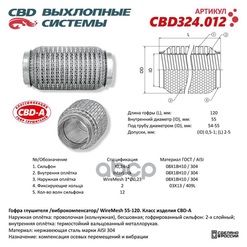 Чтобы купить ГОФРА ГЛУШИТЕЛЯ 3Х-СЛ WIRE MESH 55-120 CBD арт. CBD324012 оптом по цене 1012 руб., свяжитесь с поставщиком. Компания поставщик — For-cars (ИП «Иванов Алексей Валентинович») из города Москва. Доставка возможна самовывоз, транспортной компанией, авиатранспортом, железной дорогой. Способы оплаты: наличными, безналичная оплата, электронные деньги.