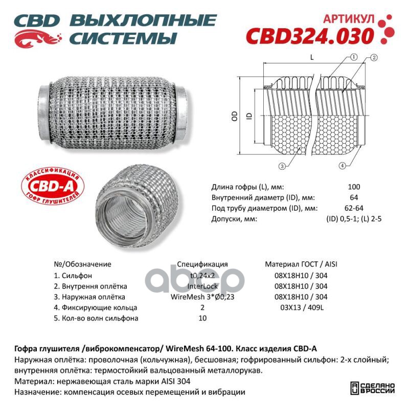 Чтобы купить Гофра глушителя 3х-сл WIRE MESH 64-100 CBD арт. CBD324030 оптом по цене 973 руб., свяжитесь с поставщиком. Компания поставщик — For-cars (ИП «Иванов Алексей Валентинович») из города Москва. Доставка возможна самовывоз, транспортной компанией, авиатранспортом, железной дорогой. Способы оплаты: наличными, безналичная оплата, электронные деньги.