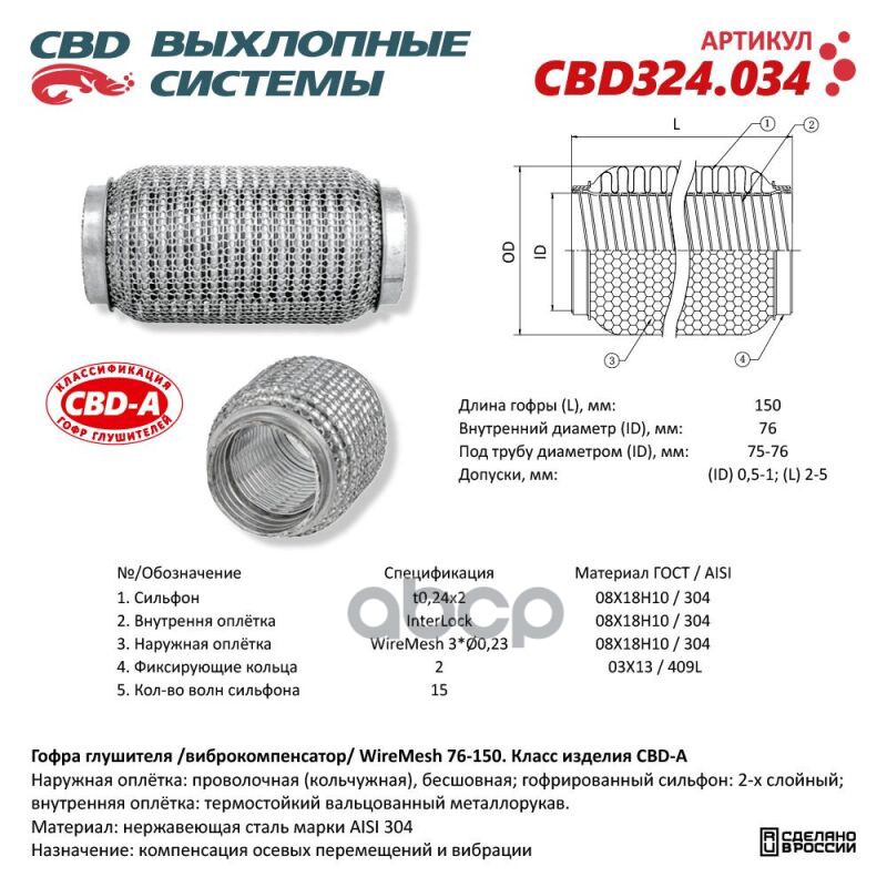 Чтобы купить Гофра глушителя 3хсл wire mesh 76150. CBD арт. CBD324034 оптом по цене 1555 руб., свяжитесь с поставщиком. Компания поставщик — For-cars (ИП «Иванов Алексей Валентинович») из города Москва. Доставка возможна самовывоз, транспортной компанией, авиатранспортом, железной дорогой. Способы оплаты: наличными, безналичная оплата, электронные деньги.