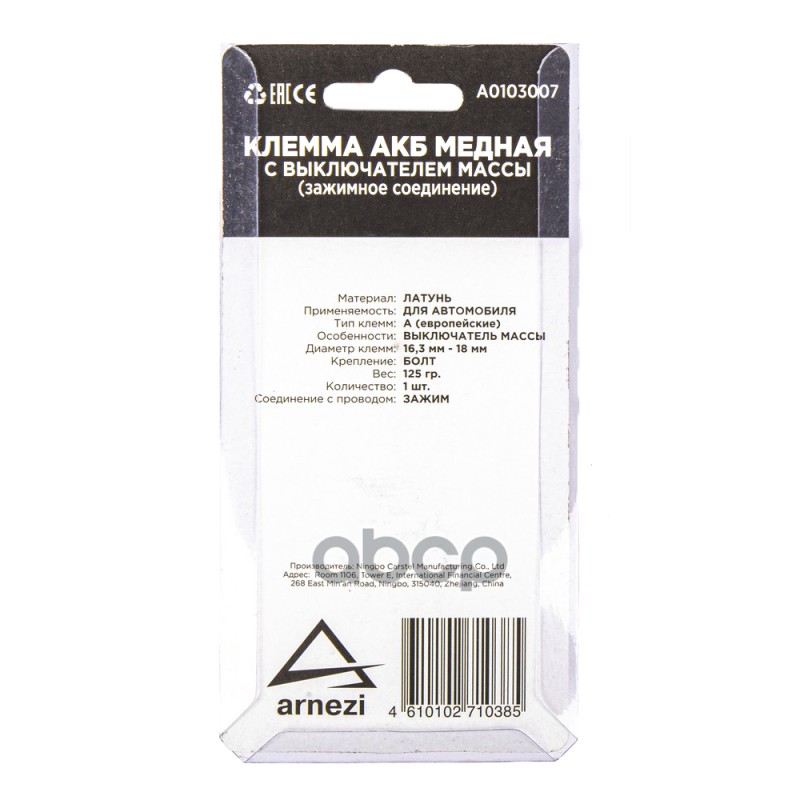 Чтобы купить Клемма аккумулятора ARNEZI арт. A0103007 оптом по цене 539 руб., свяжитесь с поставщиком. Компания поставщик — For-cars (ИП «Иванов Алексей Валентинович») из города Москва. Доставка возможна самовывоз, транспортной компанией, авиатранспортом, железной дорогой. Способы оплаты: наличными, безналичная оплата, электронные деньги.