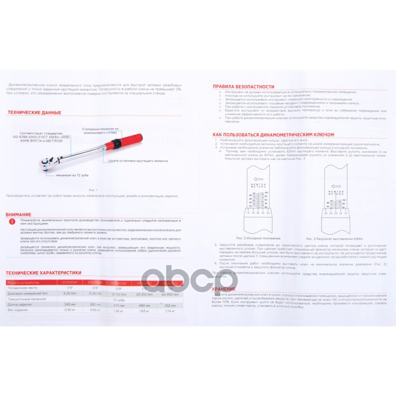 Ключ динамометрический 1_2 65-350 Нм, 72 зуба, в кейсе L=552мм ARNEZI.