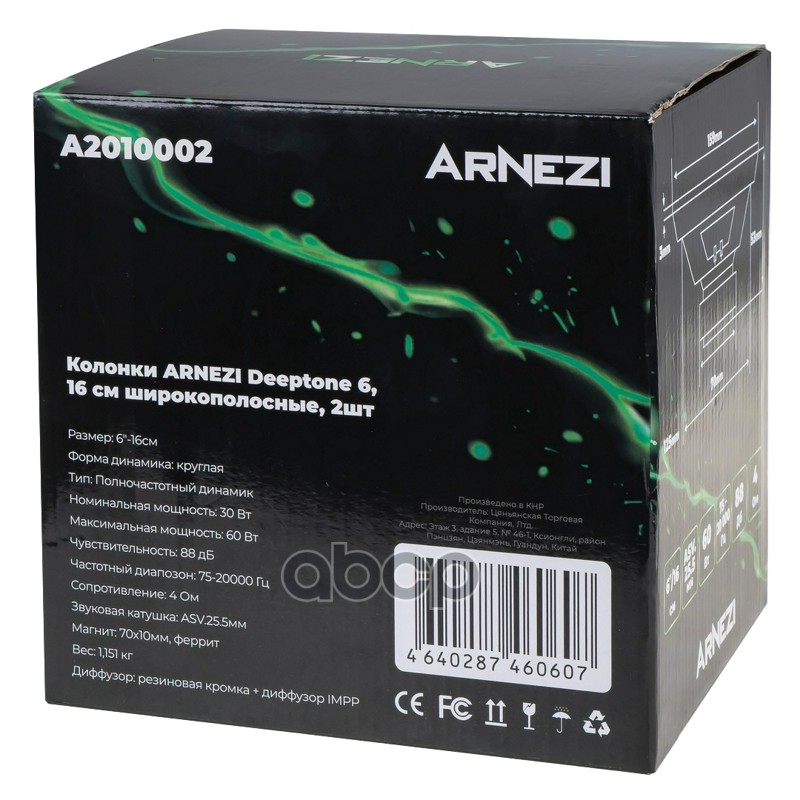 Колонки ARNEZI Deeptone 6, 16 см широкополосные, 2шт, 16 см (6 дюйм.), Max Вт AR.