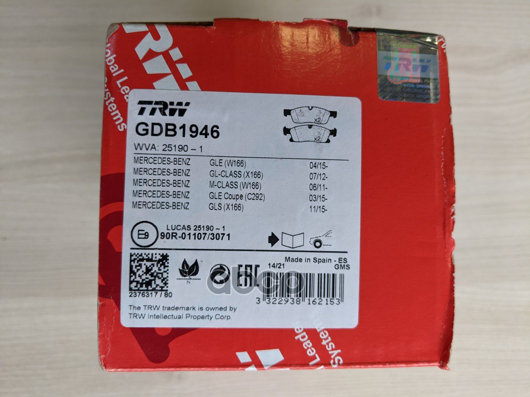 Чтобы купить Комплект тормозных колодок TRW арт. GDB1946 оптом по цене 9164 руб., свяжитесь с поставщиком. Компания поставщик — For-cars (ИП «Иванов Алексей Валентинович») из города Москва. Доставка возможна самовывоз, транспортной компанией, авиатранспортом, железной дорогой. Способы оплаты: наличными, безналичная оплата, электронные деньги.