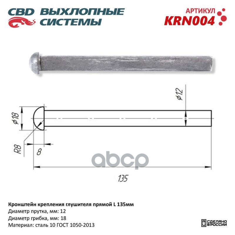 КРОНШТЕЙН КРЕПЛЕНИЯ ГЛУШИТЕЛЯ ПРЯМОЙ L135ММ. CBD.