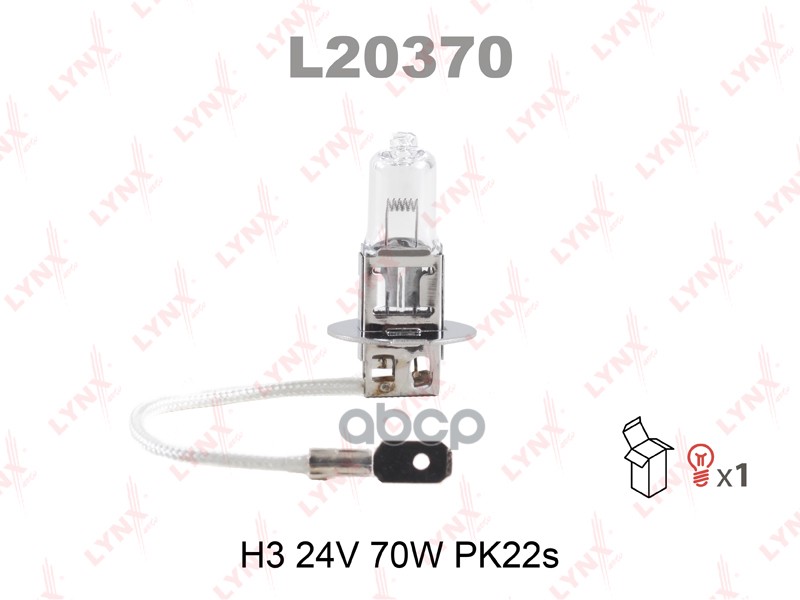 Чтобы купить Лампа галогеновая H3 24V 70W PK22S LYNXauto арт. L20370 оптом по цене 111 руб., свяжитесь с поставщиком. Компания поставщик — For-cars (ИП «Иванов Алексей Валентинович») из города Москва. Доставка возможна самовывоз, транспортной компанией, авиатранспортом, железной дорогой. Способы оплаты: наличными, безналичная оплата, электронные деньги.
