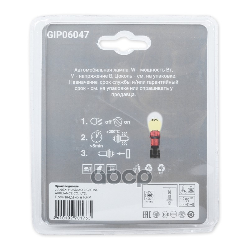 Чтобы купить Лампа накаливания GANZ арт. GIP06047 оптом по цене 262 руб., свяжитесь с поставщиком. Компания поставщик — For-cars (ИП «Иванов Алексей Валентинович») из города Москва. Доставка возможна самовывоз, транспортной компанией, авиатранспортом, железной дорогой. Способы оплаты: наличными, безналичная оплата, электронные деньги.