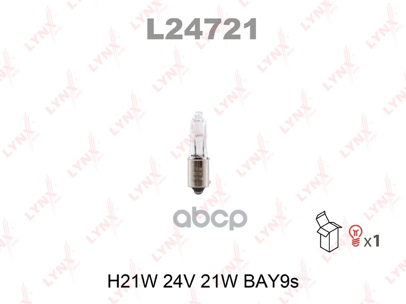 Чтобы купить Лампа накаливания H21W 24V 21W BAY9S LYNXauto арт. L24721 оптом по цене 312 руб., свяжитесь с поставщиком. Компания поставщик — For-cars (ИП «Иванов Алексей Валентинович») из города Москва. Доставка возможна самовывоз, транспортной компанией, авиатранспортом, железной дорогой. Способы оплаты: наличными, безналичная оплата, электронные деньги.