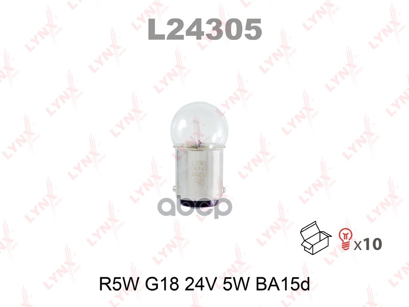 Чтобы купить Лампа накаливания R5W G18 24V 5W BA15D LYNXauto арт. L24305 оптом по цене 23 руб., свяжитесь с поставщиком. Компания поставщик — For-cars (ИП «Иванов Алексей Валентинович») из города Москва. Доставка возможна самовывоз, транспортной компанией, авиатранспортом, железной дорогой. Способы оплаты: наличными, безналичная оплата, электронные деньги.