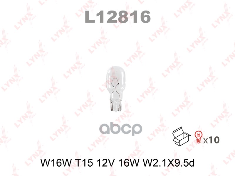 Чтобы купить Лампа накаливания W16W T15 12V 16W W2.1X9.5d ( MIN 10ШТ ) LYNXauto арт. L12816 оптом по цене 49 руб., свяжитесь с поставщиком. Компания поставщик — For-cars (ИП «Иванов Алексей Валентинович») из города Москва. Доставка возможна самовывоз, транспортной компанией, авиатранспортом, железной дорогой. Способы оплаты: наличными, безналичная оплата, электронные деньги.