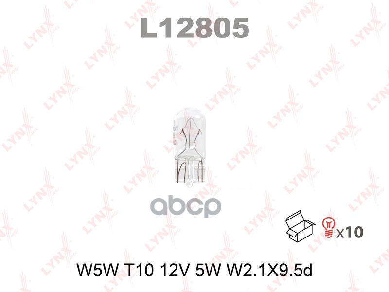 Чтобы купить Лампа накаливания W5W T10 12V 5W W2.1X9.5d ( MIN 10ШТ ) LYNXauto арт. L12805 оптом по цене 18 руб., свяжитесь с поставщиком. Компания поставщик — For-cars (ИП «Иванов Алексей Валентинович») из города Москва. Доставка возможна самовывоз, транспортной компанией, авиатранспортом, железной дорогой. Способы оплаты: наличными, безналичная оплата, электронные деньги.