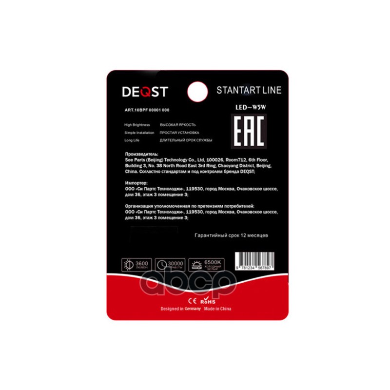 Чтобы купить Лампа светодиодная сигнальная W5W W2.1x9.5d T10 LED Standart Line 12-24В 1Вт 6000K к-т 2шт DEQST арт. 251001 оптом по цене 502 руб., свяжитесь с поставщиком. Компания поставщик — For-cars (ИП «Иванов Алексей Валентинович») из города Москва. Доставка возможна самовывоз, транспортной компанией, авиатранспортом, железной дорогой. Способы оплаты: наличными, безналичная оплата, электронные деньги.